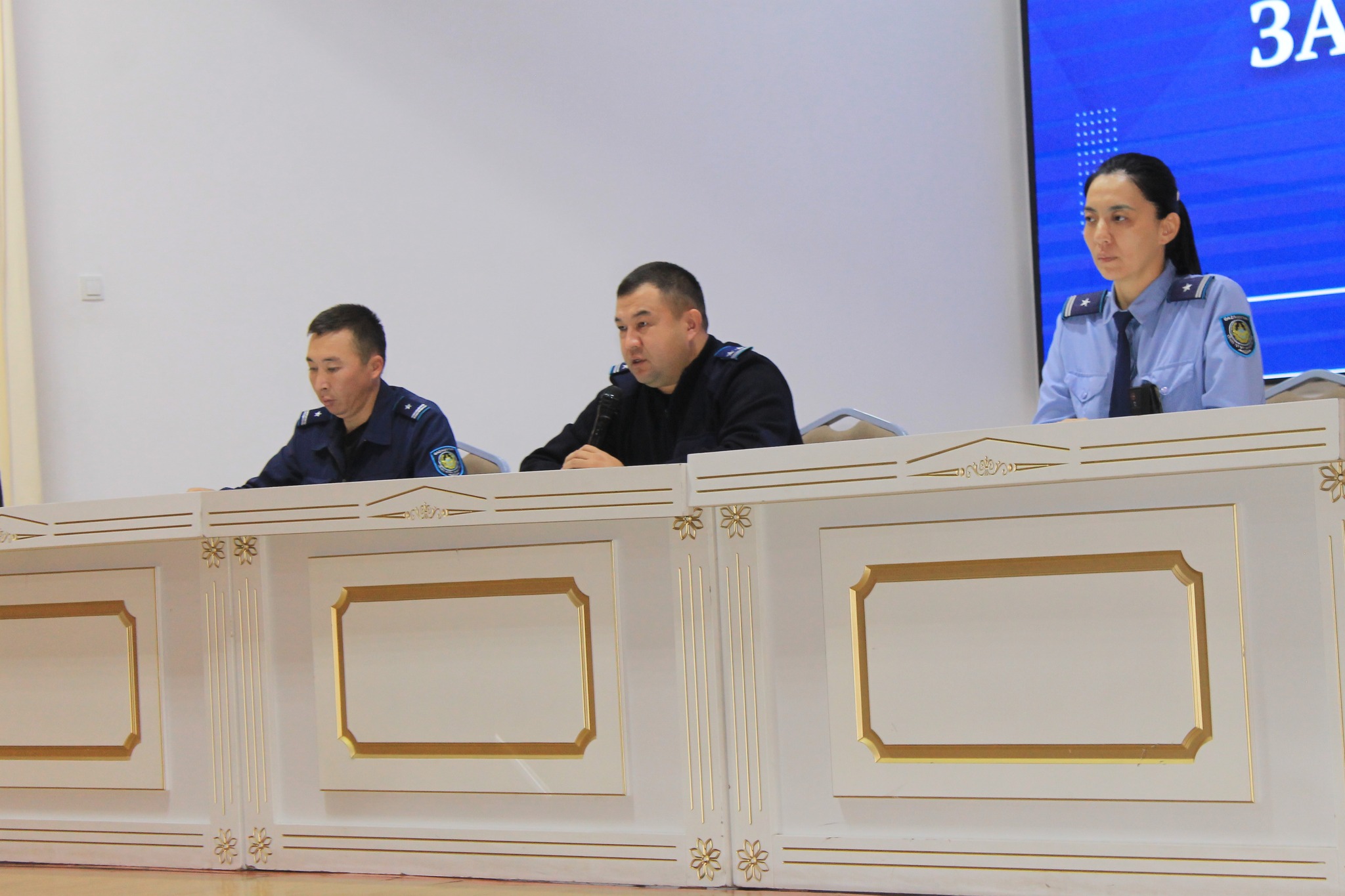 Құзырлы мекеме қызметкерлері Шымкент каласы Полиция департаменты ККБ бастыгынын орынбасары полиция полковнигы Е.Ниязов, Шымкент каласы Полиция департаменты Аль-Фараби АПБ ЖПКБ бастыгынын орынбасары полиция подполковнигы Д.Бекболатулы, Шымкент каласы Полиция департаменты Аль-Фараби АПБ ЖПКБ ЮПБ УПИ полиция майоры С.Байсеитов, Шымкент каласы Полиция департаменты Аль-Фараби АПБ ЖПКБ ЮПБ УПИ полиция майоры Жумагул Меруерт Сагыналыкызы жасөспірімдерге өмір қауіпсіздігі, құқықтық жауапкершілік және құқықбұзушылықтың алдын алу тақырыптарында маңызды ақпараттармен бөлісті.