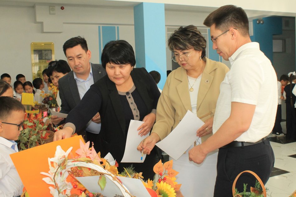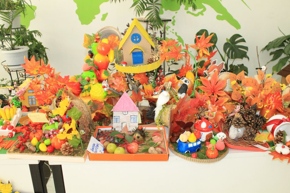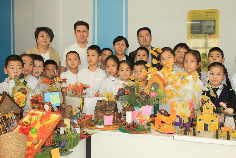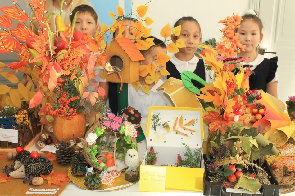 Оқушылар күздің берекелі өнімдерінен, түрлі жемістер мен көкөністерден өз қолдарымен әсем бұйымдар жасап, көрмеге ұсынды.